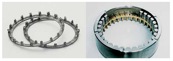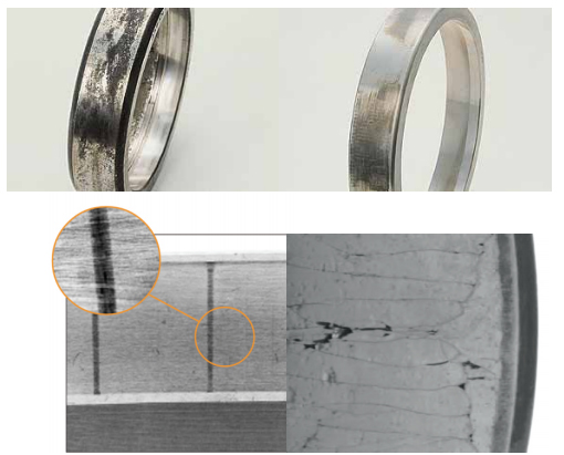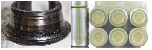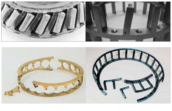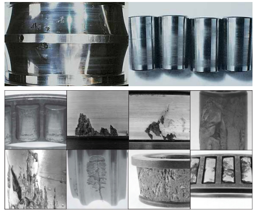 e.保持架材料缺陷(如裂紋、大塊異金屬夾雜物、縮孔、氣泡)及鉚合缺陷(缺釘、墊釘或兩半保持架結合面空隙,嚴重鉚傷)等均可能造成保持架斷裂。采取對策為在制造過 程中加以嚴格控制。